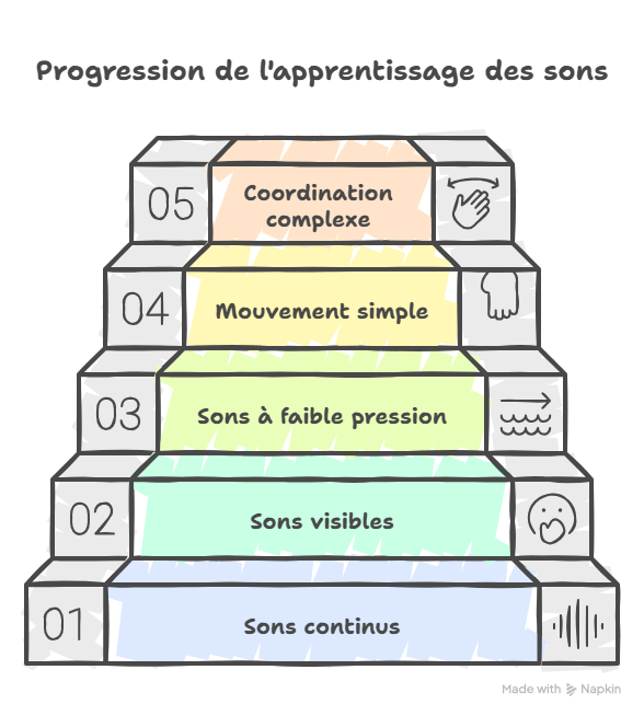 De plus, elles sont particulièrement utiles pour former rapidement des syllabes précoces simples et fonctionnelles (ma, na…), favorisant ainsi l’émergence des premières productions verbales structurées.